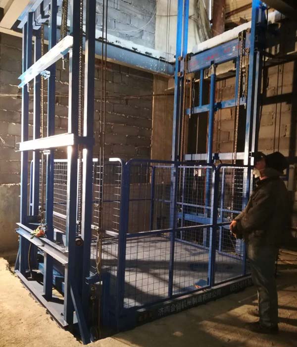 液壓升降貨梯生產(chǎn)制造廠家-濟南金創(chuàng)機械制造有限公司,為威海客戶定做的升高13米,載重5噸的導(dǎo)軌鏈條式液壓升降貨梯,嚴(yán)寒天氣下,經(jīng)過安裝師傅加班加點的努力,昨天下午通過了客戶方的驗收工作。