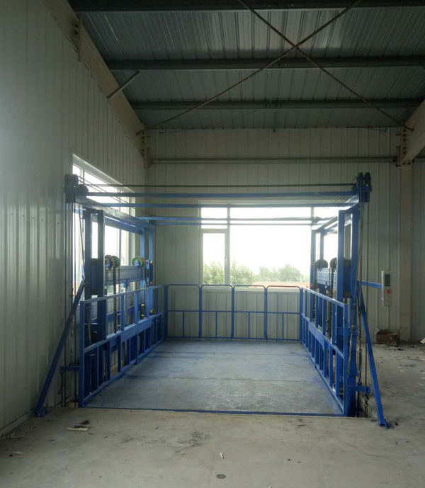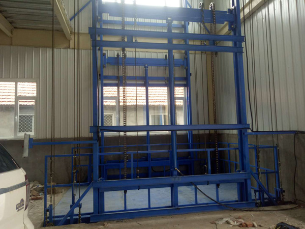 液壓升降平臺制造廠家-濟(jì)南金創(chuàng)升降機械,生產(chǎn)的雙體導(dǎo)軌鏈條式液壓升降平臺在河北保定安裝完成,日前已經(jīng)投入使用中。