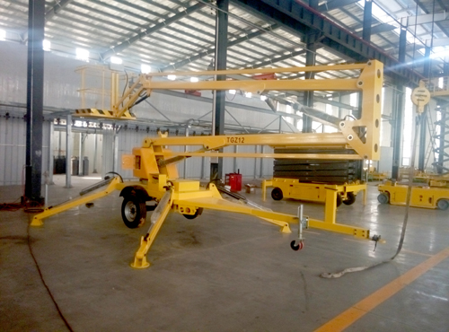 牽引折臂式液壓升降機(jī),動(dòng)力采用柴油機(jī)動(dòng)力